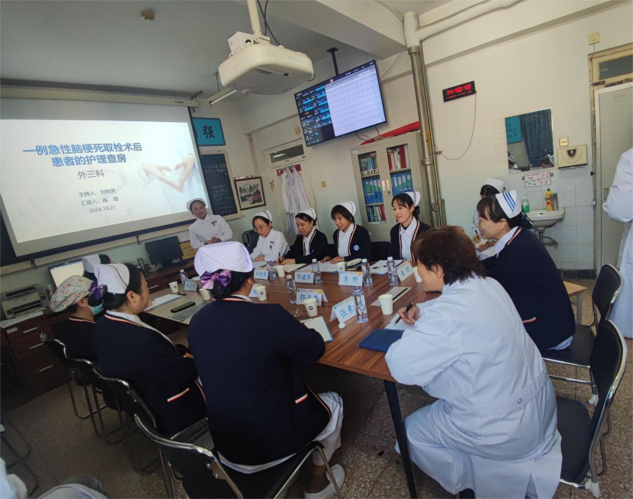 2024年10月21日,外三科进行了一例急性脑梗死取栓术后患者的医护一体化查房,此次查房专家特邀了中国中医科学院广安门医院原护理部主任张素秋,北京中医药大学东方医院护理部主任唐玲点评。护理部总护士长鄂海燕、相关科室的护士长、护理负责人及骨干护士共计22人参加。查房由外三科护士长刘桂英主持,病例汇报分别由外三科副主任医师东潇博、外三科主管护师高雅、急诊科护理负责人韩建萍、导管室主管护师潘磊共同完成。