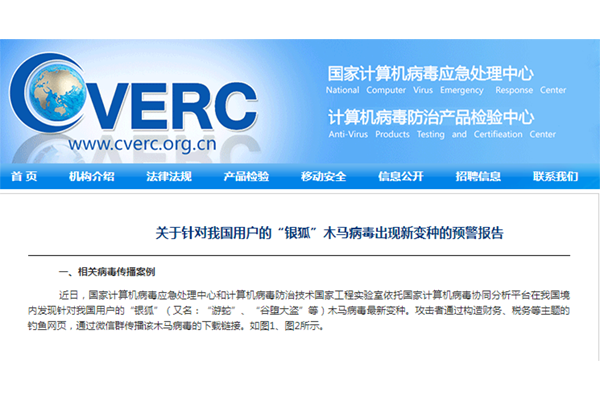 近日,国家计算机病毒应急处理中心和计算机病毒防治技术国家工程实验室依托国家计算机病毒协同分析平台,在我国境内发现针对我国用户的“银狐”(又名:“游蛇”“谷堕大盗”等)木马病毒最新变种。