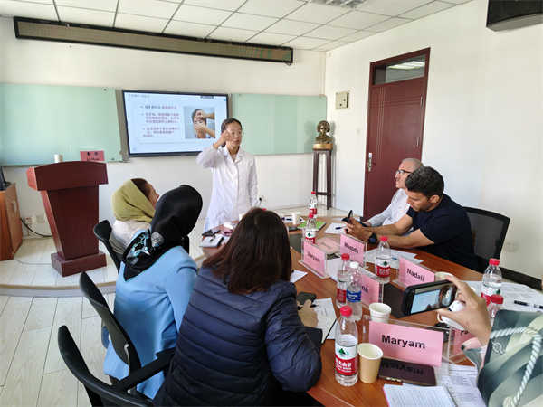 北京中医药大学东方医院针灸科专家团队为伊朗学员构建了“理论 + 临床”的完整学习体系。针灸科副主任医师李华率先以 “针灸止痛” 为主题开展专题讲座,系统讲解针灸止痛的理论基础、操作手法细节及适应症与禁忌症,为学员筑牢理论根基。