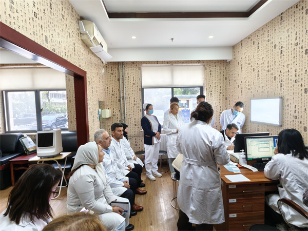 伊朗学员们分别跟随副主任医师梁翠梅、副主任医师郑入文开展跟诊学习。梁医生讲授针灸在体重调控中的辨证施治方案,包括根据患者体质选穴、针灸与饮食运动的协同干预;郑主任针对颈肩腰腿痛、头痛等常见疼痛病症,演示了穴位精准选取、针刺深度与手法调整的个性化诊疗技巧,让学员们将理论知识转化为临床实操能力,深入掌握针灸在疼痛与体重管理领域的应用要点。