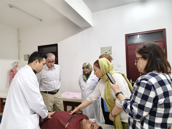近日,伊朗中医学习团在北京中医药大学东方医院完成了一场为期一周的中医特色诊疗技术研修培训。本次研修以理论授课与临床实践深度融合为核心,围绕针灸学、肿瘤学、推拿学三大中医重点领域系统展开,旨在帮助伊朗学员掌握中医特色诊疗技术,推动中伊中医药文化交流走向深入。