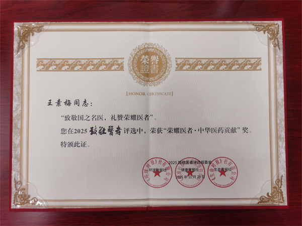 近日,首都国医名师、国家中医药管理局中医儿科学重点学科、重点专科学术带头人、北京中医药大学东方医院儿科王素梅教授凭借其在中医儿科领域的深厚造诣与突出贡献,荣获由人民日报社属环球时报社、健康时报社、生命时报社联合主办的“2025致敬医者评选活动”中华医药贡献奖。
