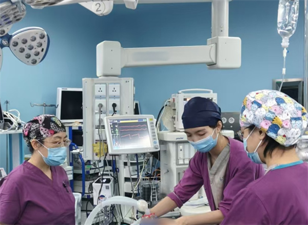 专家团队没有轻易放弃,温鑫柱选择微创髓内钉术式,该手术可以在1小时内完成,最大程度减少手术创伤及出血;姜丽考虑老人服用抗凝药物无法腰麻,且高龄患者尽量避免气管插管后,决定采用外周神经阻滞+镇静的麻醉方式,最大限度的减少麻醉药物对中枢系统的影响;王轩则对围手术期的心脏管理做了全面的指导及应急预案。同时,功能科、检验科、放射科等相关科室也积极配合应对,血库紧急备血,保证手术供血;放射科、功能科加急进行术前相关检查,为手术提供精准依据。不同于传统诊疗模式,团队不仅通过CT三维重建精准判断骨折类型,还对患者心肺功能、血压控制、营养状况等进行全面排查,在与患者家属进行全面的沟通后,最终制定了“闭合复位小切口髓内钉内固定术+精准麻醉+ERAS全程管理”的个性化方案,并决定于次日进行手术治疗。