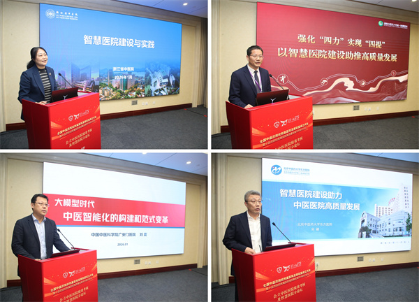 主旨演讲环节,多位行业专家学者聚焦公立中医医院精细化管理与高质量发展分享实践经验与创新思路。福建中医药大学党委常委、副校长,福建中医药大学附属人民医院党委书记赵红佳以《以绩效考核为导向,以智慧医院为支撑——构建公立中医院精细化管理新生态》为题,分享绩效考核与智慧医院深度融合的实践经验,强调要调动专科负责人及全院职工的积极性,推动思想从“要我做”向“我要做”转变,同时提出医院要形成“绩效反馈-持续改进”的闭环。河北中医药大学党委副书记、河北省中医院党委书记孙士江围绕《以绩效改革为抓手 推动医院高质量发展》,阐述绩效改革在医院发展中的核心驱动作用,表示医院要建立“一线调研、评估分析、方案制定、实践运行、绩效反馈、完善优化”的动态绩效方案调整机制,持续优化绩效管理工作。浙江省中医院常务副院长张弘以《智慧医院建设与实践》为题,分享医院在智慧医疗、智慧服务、智慧管理三大领域的探索路径与实践成果,提出要以打造“一流的技术、一流的管理、一流的学科”为目标,将闭环管理作为精细化管理的重要抓手,持续提升医院管理效能。湖南中医药大学第一附属医院党委书记谭琥以《强化“四力” 实现“四提” 以智慧医院建设助推高质量发展》为题,从医、教、研、管全方位分享以智慧医院建设提升医院核心能力的实践路径,介绍医院依托智慧化手段优化就医流程、提升诊疗效率的相关举措。中国中医科学院广安门医院党委书记刘震在《大模型时代中医智能化的构建与范式革命》报告中,介绍广安门医院“广安·岐智”大模型的“中医属性”,展示“AI+中医药”信息化成果,为中医药现代化发展提供可借鉴的创新路径。北京中医药大学第二临床医学院(东方医院)副院长吴疆以《智慧医院建设助力中医医院高质量发展》为题,介绍东方医院在智慧医院建设中的探索与成效,提出医院设立“加强智能中医诊疗应用、加强中药全周期智能管理、推进中医药装备智能升级”三大目标,为中医医院数字化转型提供实践范本。
