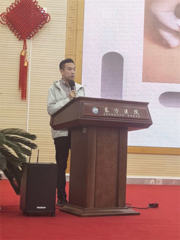 培训伊始,副院长王乐发表开场致辞。他指出,中医适宜技术开展使用是为患者提供多元化中医医疗服务,体现医院中医药特色服务优势的重要抓手,规范操作、精准应用、跨科协同是保障医疗安全与提升服务质量的关键所在。他强调,以医院十大工程3.0版工作引领,推动技术与制度双轮驱动,构建更加科学、规范、高效的中医技术应用体系,实现技术操作标准化,优势病种诊疗方案规范化,是为之后形成团标进行推广的必经之路,希望以此次培训为起点,不断拓展,形成医院中医适宜技术开展标准化的模式。