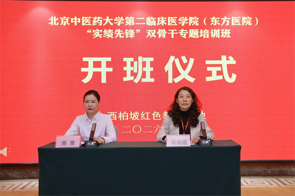 培训班开班仪式在西柏坡培训基地隆重举行。西柏坡红色教育基地副主任高雅同志出席并致辞。她代表基地对北京中医药大学东方医院一院两中心各位学员的到来表示热烈欢迎,并简要介绍了西柏坡作为“两个务必”诞生地和“进京赶考”出发地的历史地位,表示将全力保障培训顺利开展,确保学员学有所思、学有所获。