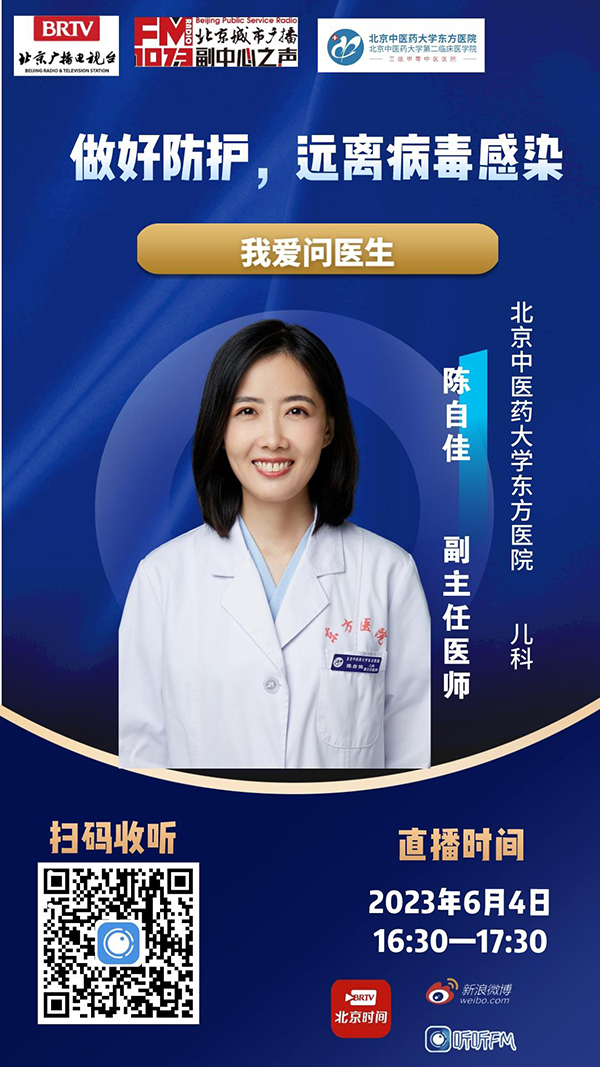 关注我们的微信公众账号 “我爱问医生”文字留言发送您的问题 ,本节目也在北京广播电视台官方客户端“听听FM”同步播出,欢迎大家到各大手机应用商店下载“听听FM”,现在,我们的节目在北京广播电视台官方客户端听听FM开通了直播聊天室。下载听听FM,在首页找到“聊天室”的图标然后进入我们的节目,就可以和我们留言互动。网络收听收看,您可以手机登录 北京时间,搜索“北京城市广播副中心之声”、新浪微博,搜索“北京城市广播FM1073”,收看视频直播。